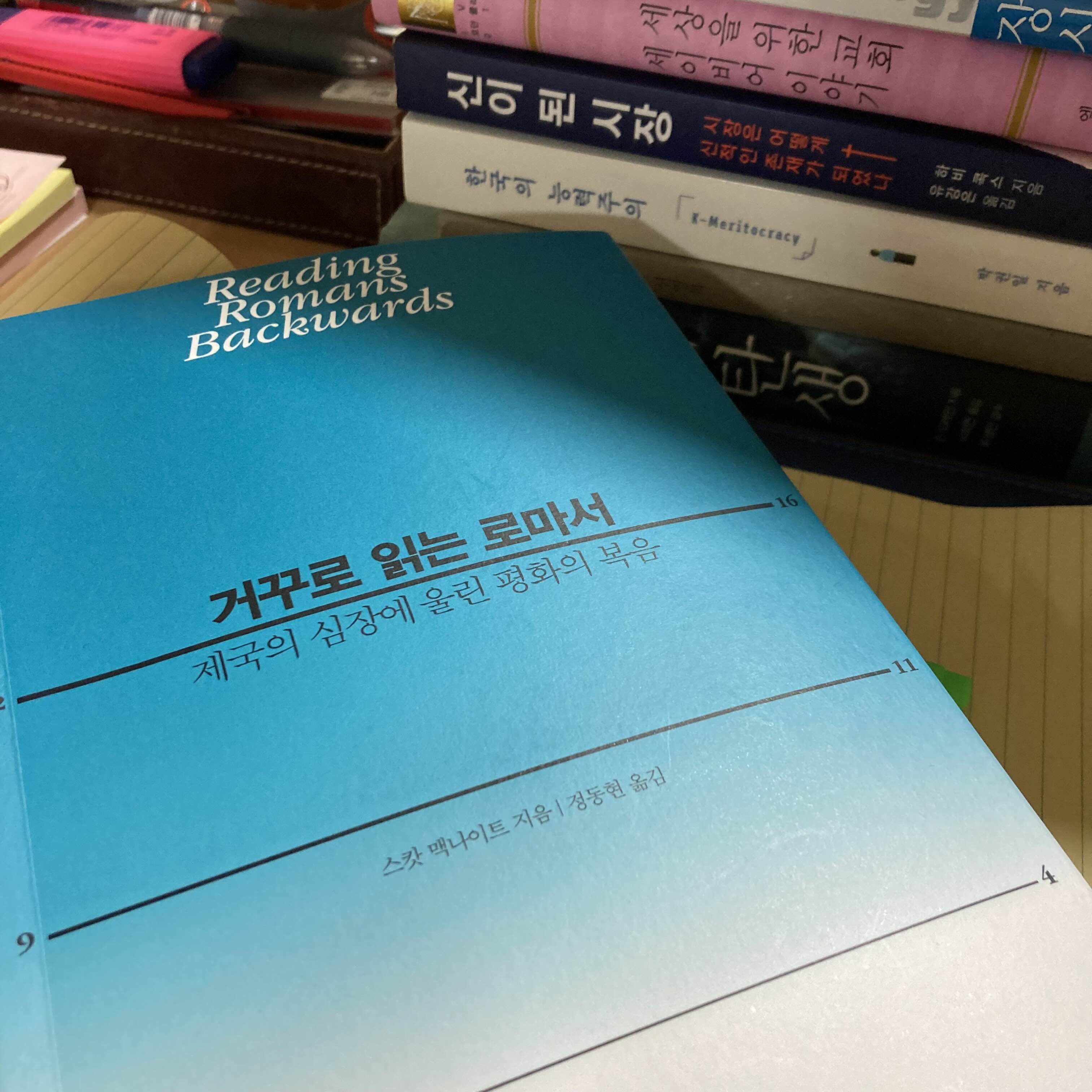 이 책. 스캇 맥나이트 답게 뻔하지 않다. 로마서를 거꾸로 읽어나간다는 것도 그렇고, 그 해석의 면면이 참 적실하고 흥미롭다. 사람이란 공간의 영향을 받기 마련인데, 뵈뵈에 의해 읽힌 바울의 로마서신은 지금의 현대화된 건물 안에서처럼 들리진 않았을거라고. 게다가 흔히 가정교회라 말하는 그 공간은 아마도 누군가의 사업장이었으리라는 상상력에서 머리가 번쩍!
